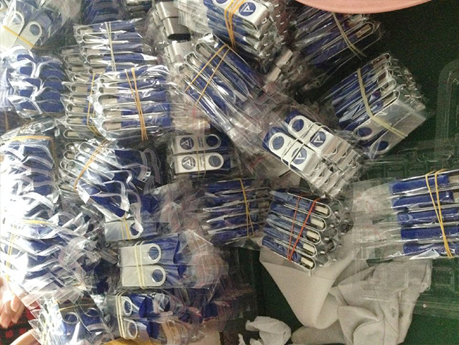 (such LOGO circle and U disk expose plastic blue circle in the metal sleeve head echoed)